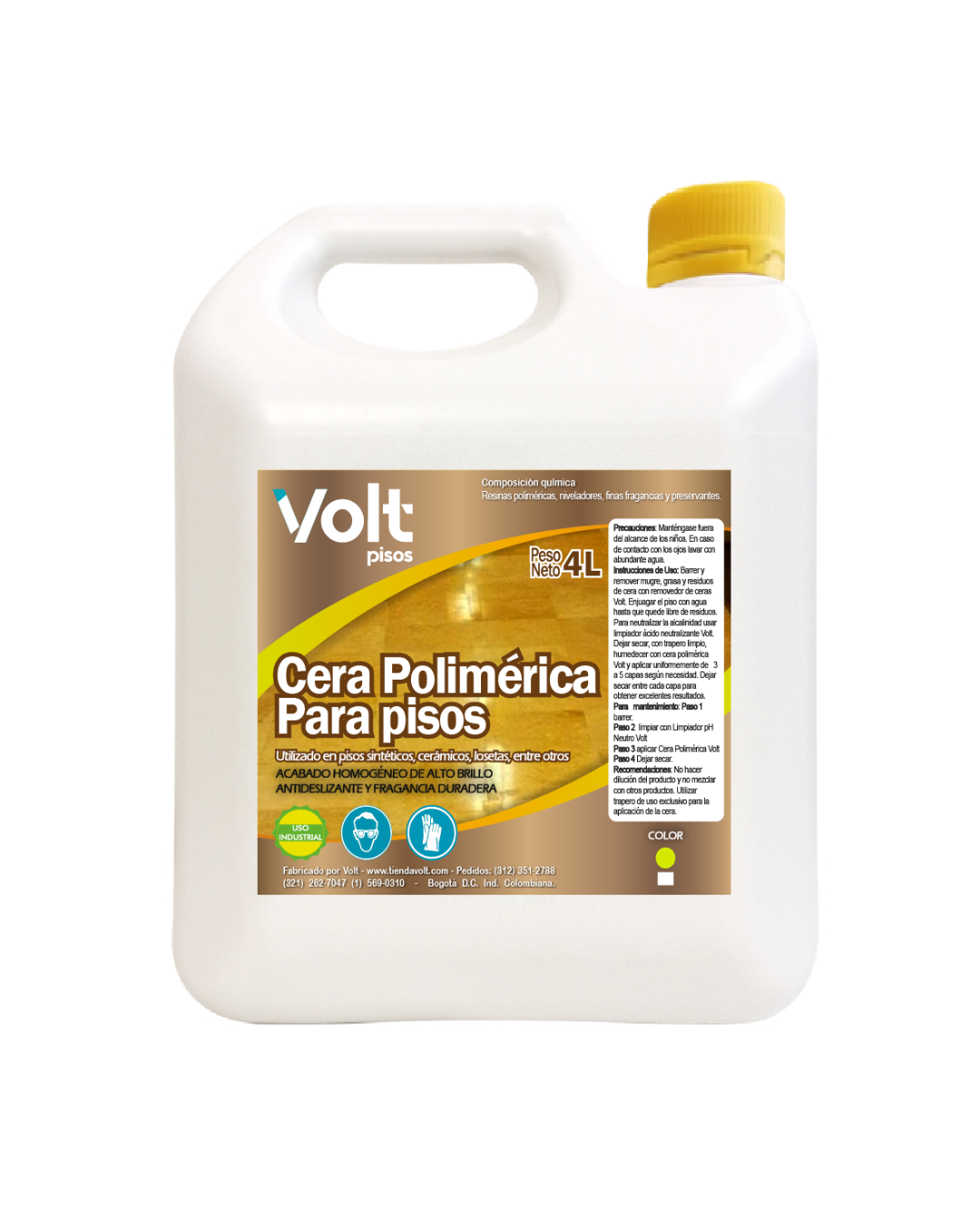 La Cera Para Pisos Amarillos de la marca VOLT es un producto que contiene una fórmula avanzada ya que por sus componentes de última tecnología proporciona una capa brillante que repele el polvo y protege las superficies.